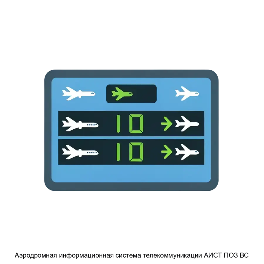 Аэродромная информационная система телекоммуникации АИСТ ПОЗ ВС является высокотехнологичным решением, предназначенным для обеспечения эффективного и безопасного управления аэронавтическими операциями на аэродроме. Эта система специально разработана для отображения важной информации о статусе операций и безопасном выпуске воздушных судов, обеспечивая своевременное информирование командиров воздушных судов и обслуживающего персонала. Основным компонентом системы является всепогодное уличное табло, которое демонстрирует оперативную информацию независимо от погодных условий, что особенно важно при плохой видимости, сильных дождях, снегопадах или тумане. Благодаря использованию современных технологий отображения, система гарантирует высокую читаемость и надежность визуальных сообщений в любых условиях.