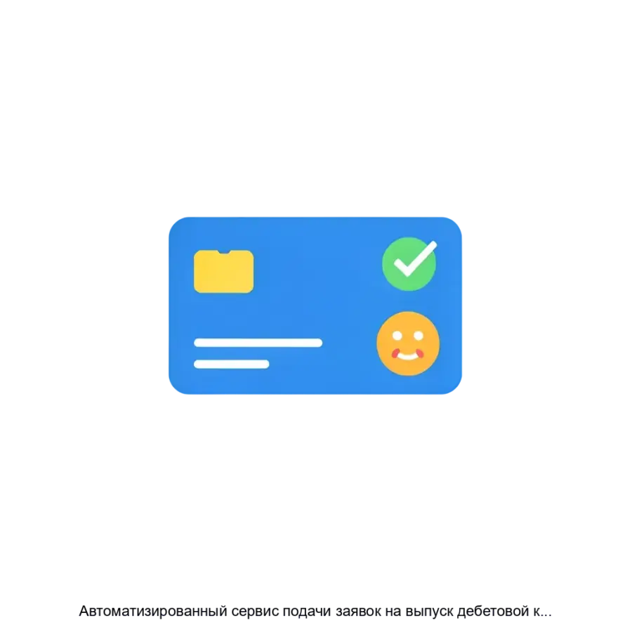 Автоматизированный сервис подачи заявок на выпуск дебетовой карты предоставляет пользователям возможность легко и быстро оформлять заявки на дебетовые карты, усиливая клиентский опыт благодаря полной автоматизации процесса. Этот сервис позволяет получить карту не выходя из дома, минимизируя время на оформление и снижая вероятность ошибок, которые могут возникнуть при ручном заполнении.