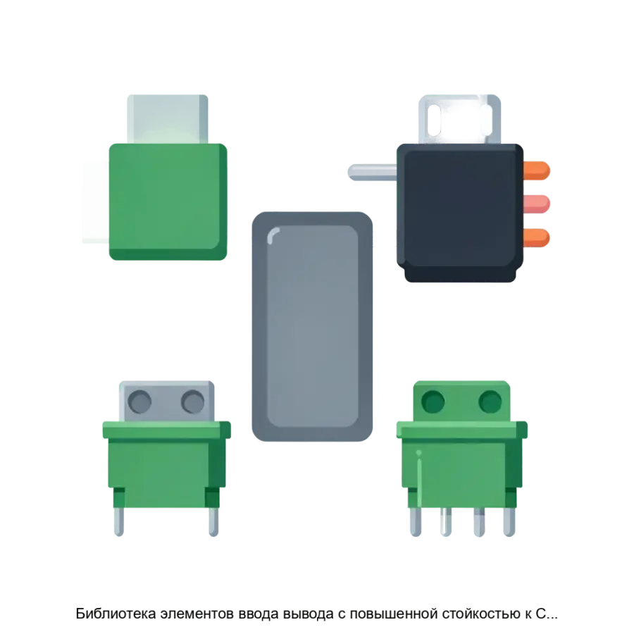 Библиотека элементов ввода-вывода с повышенной стойкостью к СВВФ (радиоэлектронная защита), обозначенная как io150u6m, является специализированным набором компонентов, предназначенным для использования в высокотехнологичных интегральных схемах. Данная библиотека включает интерфейсные элементы, которые выполнены в базе отечественной полупроводниковой технологии КМОП КНИ с технологией SOI (Silicon On Insulator) и нормой производства в 250 нм, что обеспечивает повышенную устойчивость к внешним воздействиям и радиационным факторам, таким как солнечные вспышки или сильные электромагнитные поля.