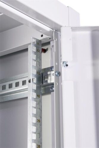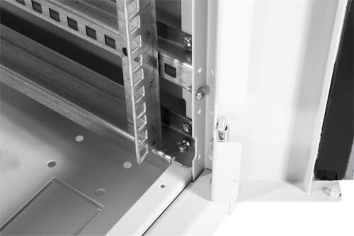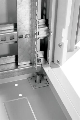 Конструкция шкафа предназначена для распределенной нагрузки до 710 кг, что позволяет устанавливать достаточно тяжелые серверы и телекоммуникационные устройства без риска деформации или потери эксплуатационных характеристик.