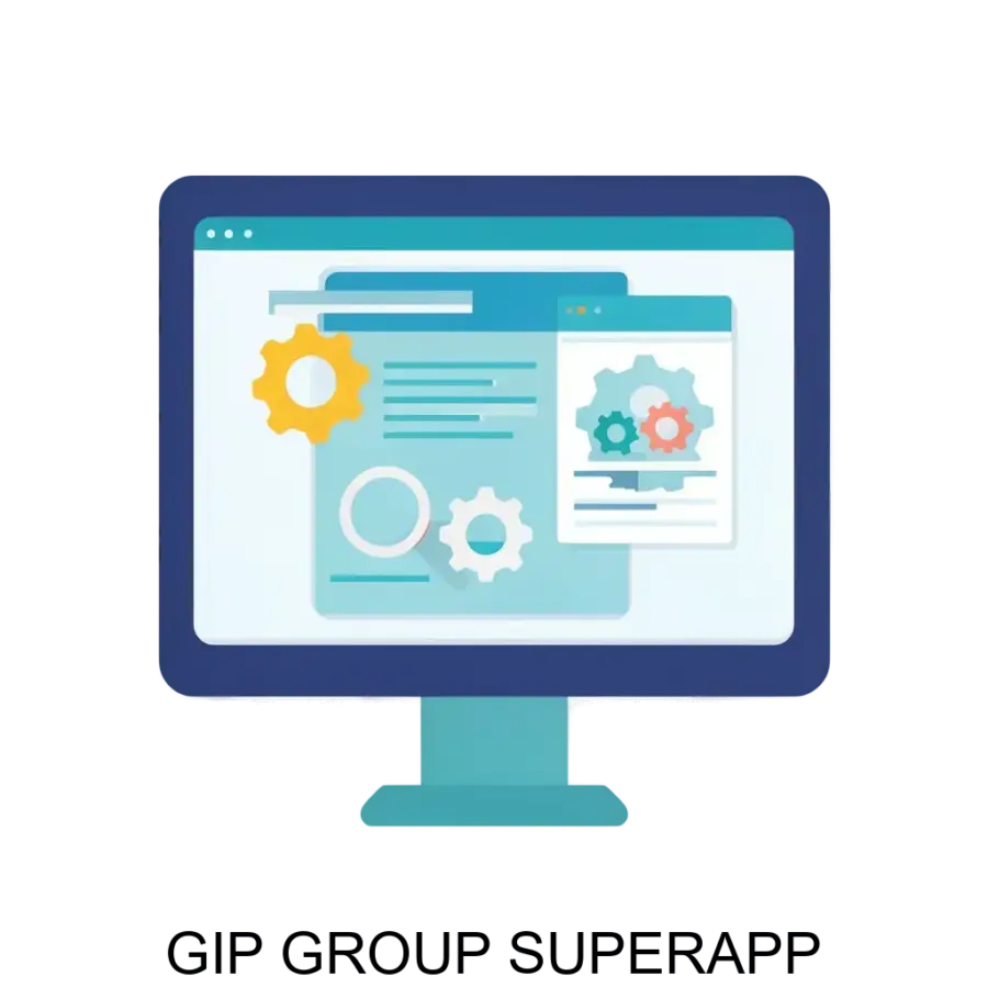 «GIP GROUP SUPERAPP» реализовано на клиент-серверной архитектуре. Серверная часть основана на фреймворке Django3.0 с использованием Python3.6, а клиентская часть применяется Vue3.js и Javascript. В качестве базы данных используется PostgreSQL. Программное обеспечение зарегистрировано в реестре программного обеспечения Минцифры и соответствует требованиям законодательства России, включая закон 152-ФЗ.