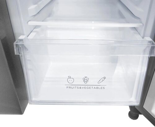 Внутреннее пространство холодильника спланировано с учетом максимального удобства. Регулируемые полки, специальные отделения для овощей и фруктов, а также вместительные дверные карманы способствуют рациональному размещению продуктов разных видов и размеров. Наличие светодиционной подсветки обеспечивает яркое и равномерное освещение внутреннего пространства.
