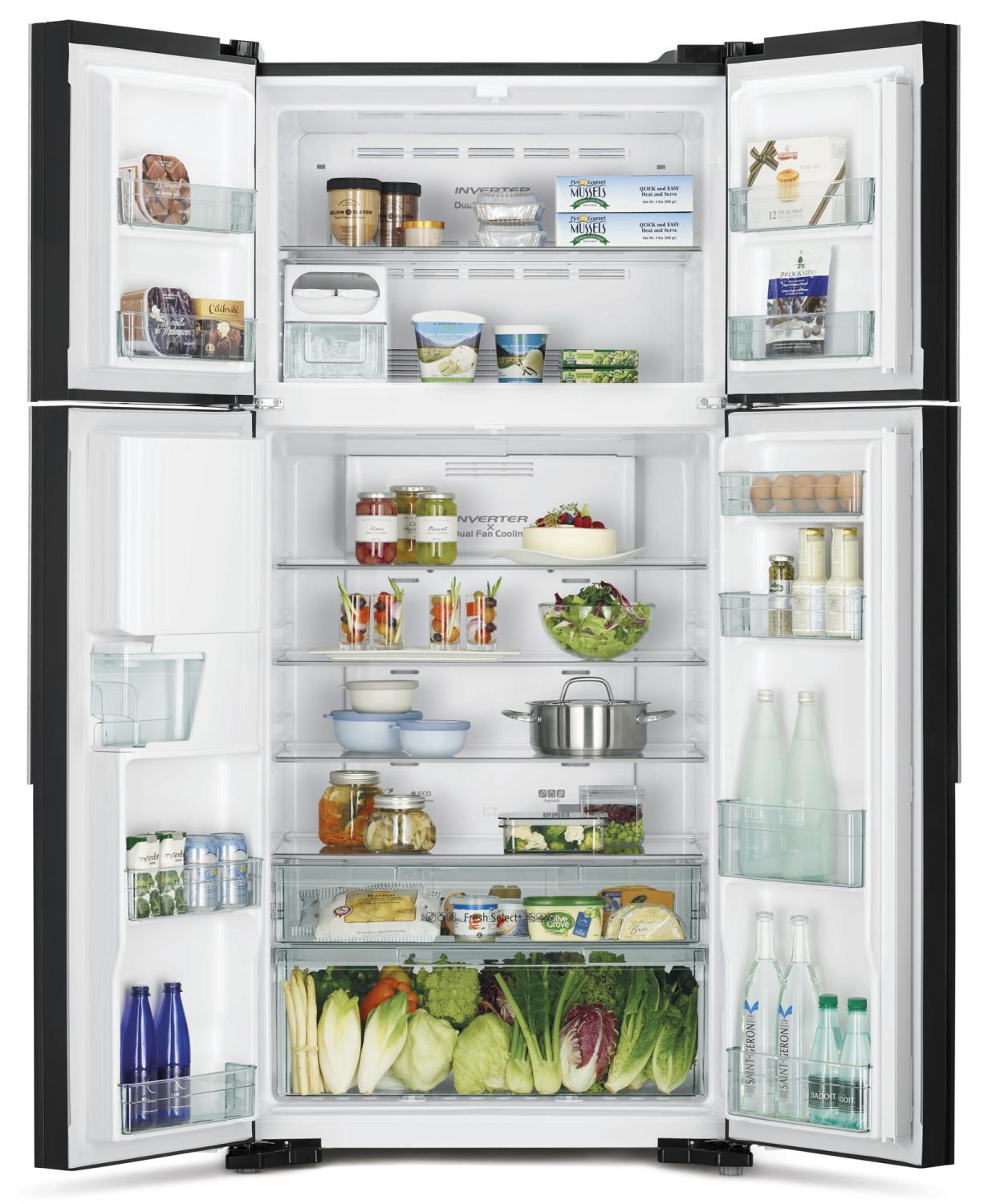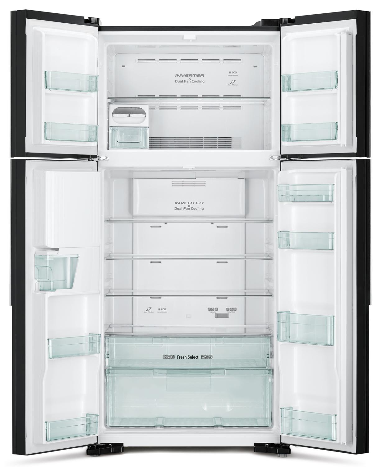 Холодильник Hitachi R-W660PUC7 GBK — современное решение для хранения продуктов, сочетающее в себе стильный дизайн и высокие технические характеристики. Этот двухкамерный холодильник с верхней морозильной камерой предназначен для обеспечивания свежести и сохранности продуктов в домашних условиях. Его корпус выполнен в элегантном черном стеклянном покрытии, что придает интерьеру современный и лаконичный вид. Модель R-W660PUC7 GBK отличается высокой энергоэффективностью и надежностью благодаря использованию инверторных технологий, что обеспечивает меньшее потребление энергии и более тихую работу устройства. Наверху расположена морозильная камера, что удобно для быстрого доступа к замороженным продуктам, а также для организации хранения в ежедневных условиях. В холодильнике предусмотрено четыре двери, что обеспечивает удобство доступа и более эффективную организацию внутреннего пространства. Внутри холодильной камеры предусмотрены вместительные отделения и полки из закаленного стекла, что помогает сохранять продукты в свежем виде, а также легко очищать поверхность. технология инверторного компрессора обеспечивает стабильную температуру, что способствует более длительному хранению продуктов без потери их качества и витаминов. Эффективное охлаждение и равномерное распределение холода позволяют сохранять продукты свежими дольше стандартных моделей. При габаритах 0,91×0,78×1,88 метра и весе около 76 кг, данный холодильник легко впишется в большинство кухонных интерьеров и будет служить долгие годы. Его объем составляет примерно 1.334424 кубических метра, что достаточно для хранения продуктов семьи из 3-5 человек. Удобство эксплуатации дополняется современными функциями, такими как автоматическая разморозка, свет внутри холодильника, энергоэффективный режим и тихая работа. По своим характеристикам, данная модель идеально подходит для семейных кухонь, офисных помещений или мест с ограниченным пространством, где важна надежность и стильный дизайн. Это устройство не только функционально и экономично, но и станет стильным дополнением интерьера, подчеркивающим современность и вкус владельца. В результате, модель Hitachi R-W660PUC7 GBK сочетает в себе качество, технологичность и эстетический дизайн, отвечающее высоким требованиям современных потребителей и стандартам бытовой техники.