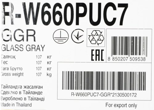 Инверторный компрессор в модели R-W660PUC7 GGR обеспечивает плавную и точную регулировку температуры, снижая расход электроэнергии и уменьшая уровень шума во время работы. Технология инвертора также повышает надежность устройства и продлевает срок его службы, одновременно обеспечивая стабильные параметры охлаждения.