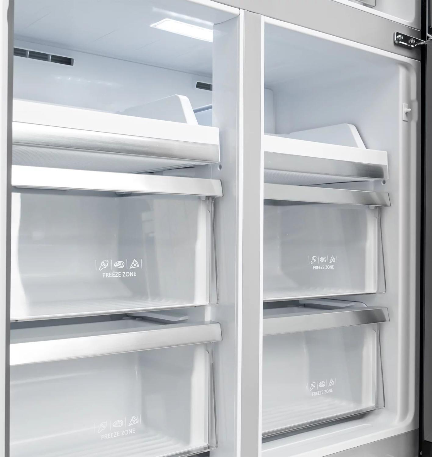 Этот холодильник идеально подходит для семей, нуждающихся в большем объеме хранения продуктов, а также для тех, кто ценит стильный дизайн и современные технологии. Модель оснащена четырьмя дверцами, которые обеспечивают удобный доступ к различным отсекам. Инвертерный компрессор способствует снижению энергопотребления и увеличению срока службы устройства. Благодаря продуманной внутренней компоновке и наличию трех камер, данный холодильник отлично справляется с задачами разделения свежих и замороженных продуктов, что обеспечивает их длительную сохранность и качество.