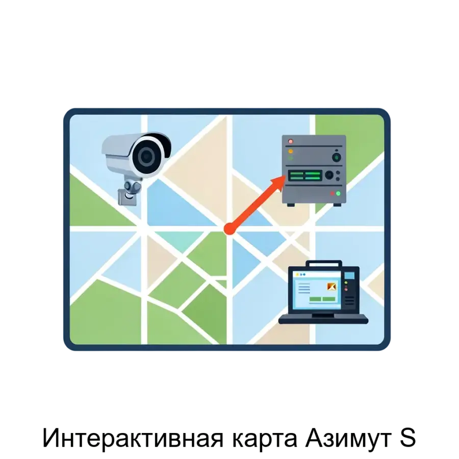 «Интерактивная карта Азимут S» представляет собой серверное приложение, которое включает в себя подсистему видеокодирования и сервер хранения данных. Оно обеспечивает кодирование видеопотока с любых камер в формат, совместимый с современными веб-браузерами. Программное обеспечение также позволяет архивировать потоки с камер, что делает его масштабируемым и способным обрабатывать неограниченное количество устройств.