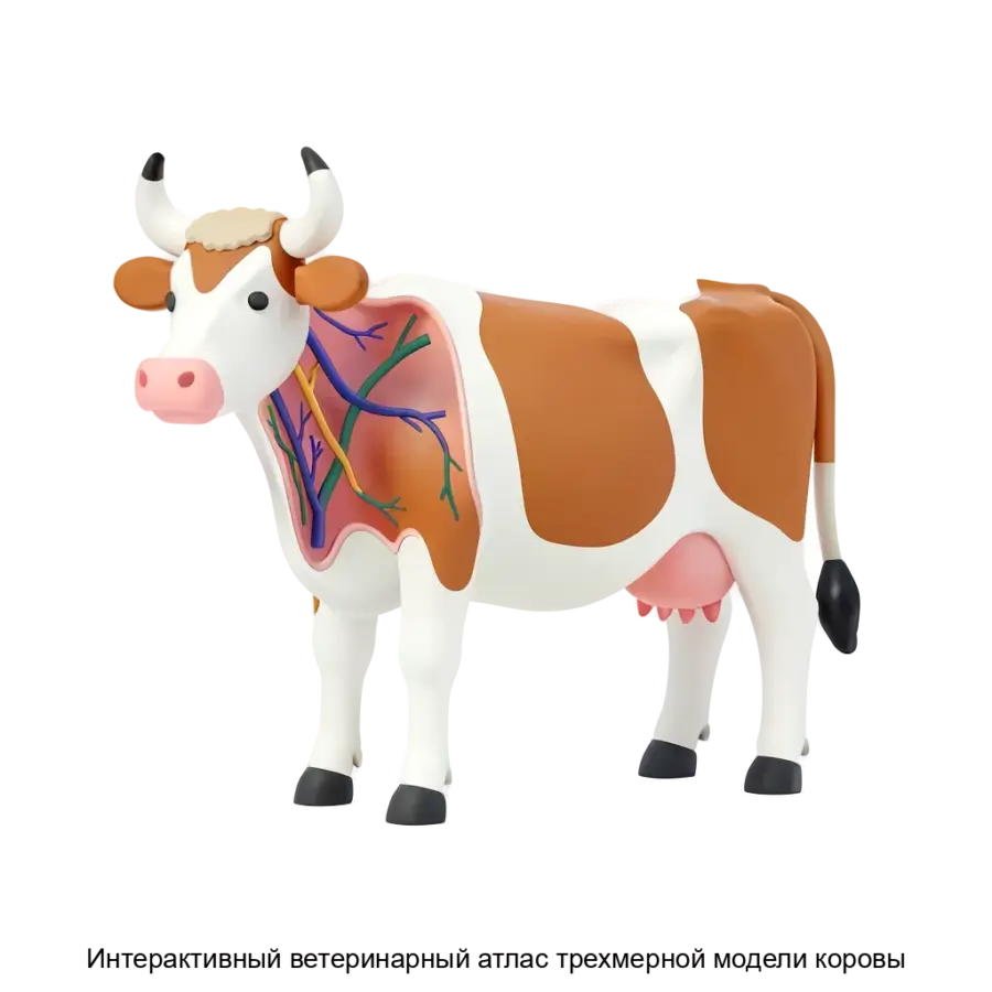 Интерактивный ветеринарный атлас трехмерной модели коровы — это передовое программное обеспечение, предназначенное для глубокого и детального изучения анатомии крупного рогатого скота. Разработанное специально для ветеринарных специалистов, студентов и преподавателей ветеринарных вузов, это приложение обеспечивает максимально точную и интерактивную визуализацию всех анатомических структур коровы в трехмерном пространстве. С его помощью пользователи могут свободно выполнять вращение модели, приближение и отдаление, а также управлять отображением различных слоев и систем, что дает возможность понять внутреннюю организацию организма в полном объеме.