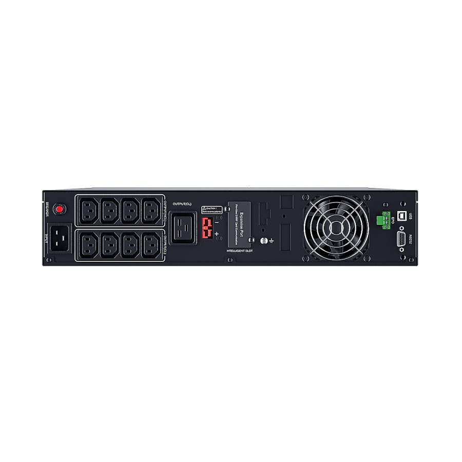 Работа устройства стабилизирована при входных напряжениях в диапазоне от 140 В до 300 В, при этом он работает при номинальном входном напряжении 230 В и частоте 60 Гц. Коэффициент мощности при входе составляет 0.99, а на выходе — 0.9, что обеспечивает эффективное использование энергии и снижение потерь. Максимальный токозагруженный режим допускает длительную работу в режиме перегрузки до 110%, что равно одному минуту, в случае возникновения аварийной ситуации Время переключения из режима работы от батареи в режим сети минимальное — при отсутствии нулевого (0 мс) времени переключения, что важно в системах, чувствительных к перерывам питания.