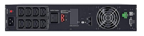 Для подключения внешних устройств и мониторинга ИБП предусмотрены различные интерфейсные порты: два порта RJ11/RJ45, USB, RS-232 и слот для установки сетевого модуля SNMP. Кроме того, устройство поддерживает функцию аварийного отключения питания (EPO), что позволяет мгновенно и безопасно отключить подключённое оборудование в экстренных ситуациях.