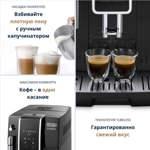 Кофемашина Delonghi Dinamica ECAM350.15.B представляет собой современное автоматическое устройство для приготовления различных видов кофе. Оснащённая мощным нагревательным элементом мощностью 1450 Вт, эта модель обладает высокой производительностью и способна быстро подготовить напиток с насыщенным вкусом и ароматом.