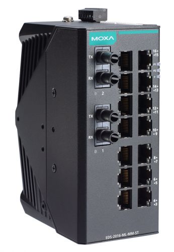 Коммутатор MOXA EDS-2016-ML-MM-ST-T — это неуправляемый промышленный Ethernet-коммутатор, предназначенный для использования в различных сетевых инфраструктурах, требующих высокой надежности и стабильности соединения. В основном он рассчитан на обеспечение соединения в корпоративных, промышленных и городских сетях, где важна устойчивость к экстремальным условиям эксплуатации. Основной функцией устройства является расширение Ethernet-сетей за счет 16 портов для проводных подключений и дополнительных оптических портов для организации длинных линий передачи данных.