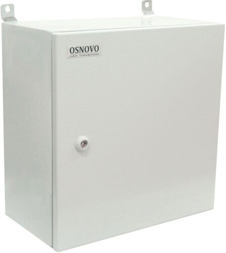 Корпус размером 300 x 300 x 210 мм изготовлен из прочного металла, что обеспечивает не только защиту от внешних воздействий, но и эффективное тепловыделение. Питание осуществляется от переменного тока с диапазоном 195–265 В, что гарантирует стабильную работу даже при колебаниях напряжения в сети. Оптический кросс, встроенный в устройство, упрощает организацию оптических каналов связи и расширяет возможности интеграции с магистральными сетями.