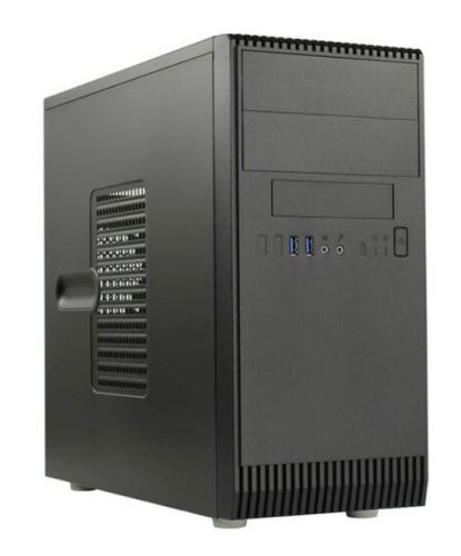 Корпус модели выполнен в форм-факторе Midi-Tower и окрашен в классический черный цвет, что позволяет легко интегрировать его в офисные или производственные среды. Размеры 170x360x400 мм позволяют разместить систему на рабочем месте, не занимая много пространства, при этом обеспечивая хорошую вентиляцию и возможность установки дополнительных компонентов.