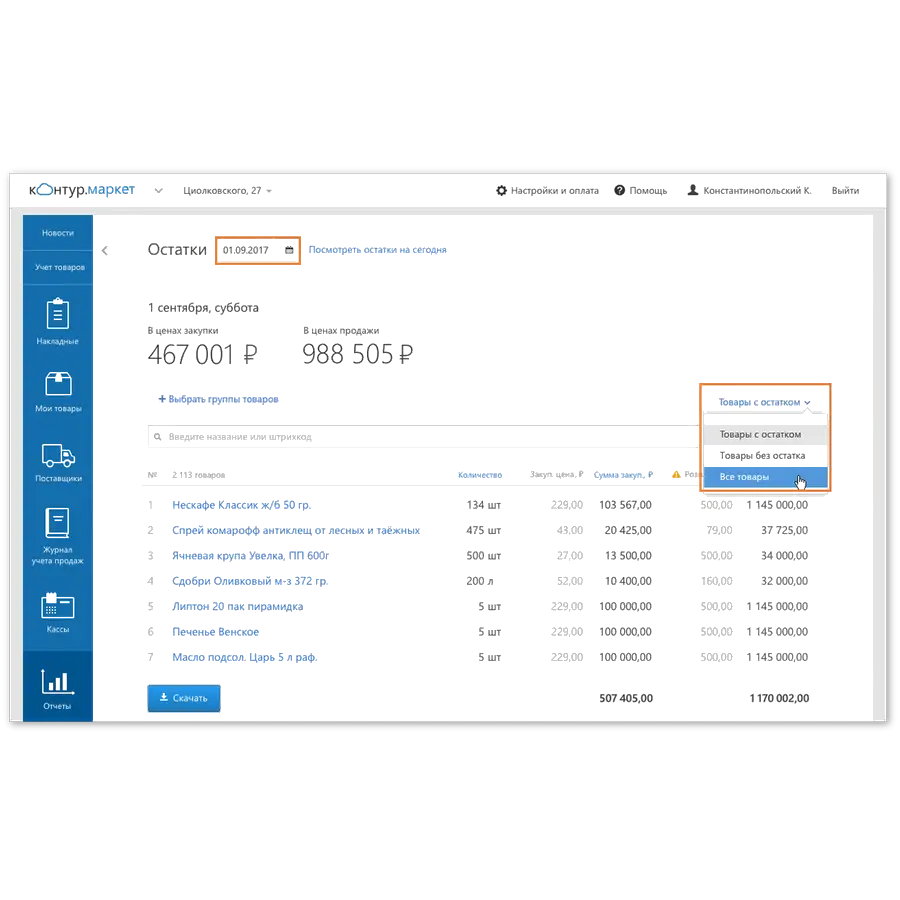 Контур.Маркет также предлагает интеграцию с модулями, такими как Алкодекларация и ОФД, для обеспечения полного цикла отчетности и автоматизации документооборота. Ключевыми особенностями являются автоматическое обновление с учетом изменений законодательства, а также возможность формирования отчетов в удобных форматах, таких как Excel, что упрощает анализ данных и последующую отчетность.