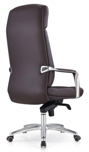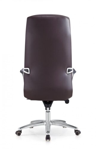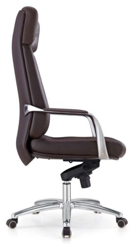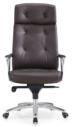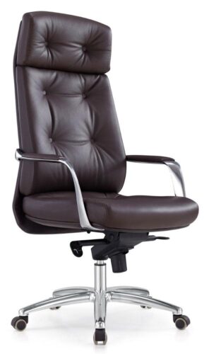 Обивка кресла выполнена из натуральной кожи коричневого оттенка, что придаёт модели строгий и солидный вид. Эта модель оснащена высокой спинкой с интегрированным подголовником, что создаёт дополнительную поддержку для шеи и плеч, уменьшая усталость при длительном сидении. Отдельная конструкция спинки относительно сиденья позволяет обеспечить оптимальную подвижность и поддержку тела.