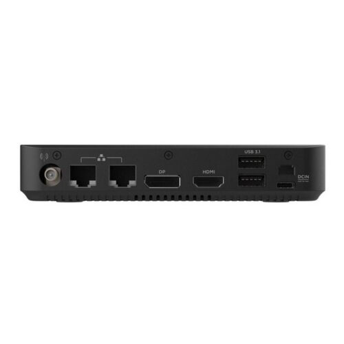 Мини ПК выполнен в форм-факторе SFF (Small Form Factor) с размерами 149.5 х 149.5 х 28.5 мм и черным пластиковой корпусом, что делает его удобным для размещения в ограниченном пространстве, например, на офисном столе, в домашних медиацентрах или в составе интеллектуальных систем управления. Возможность крепления к задней части монитора с помощью комплекта VESA расширяет варианты размещения устройства.