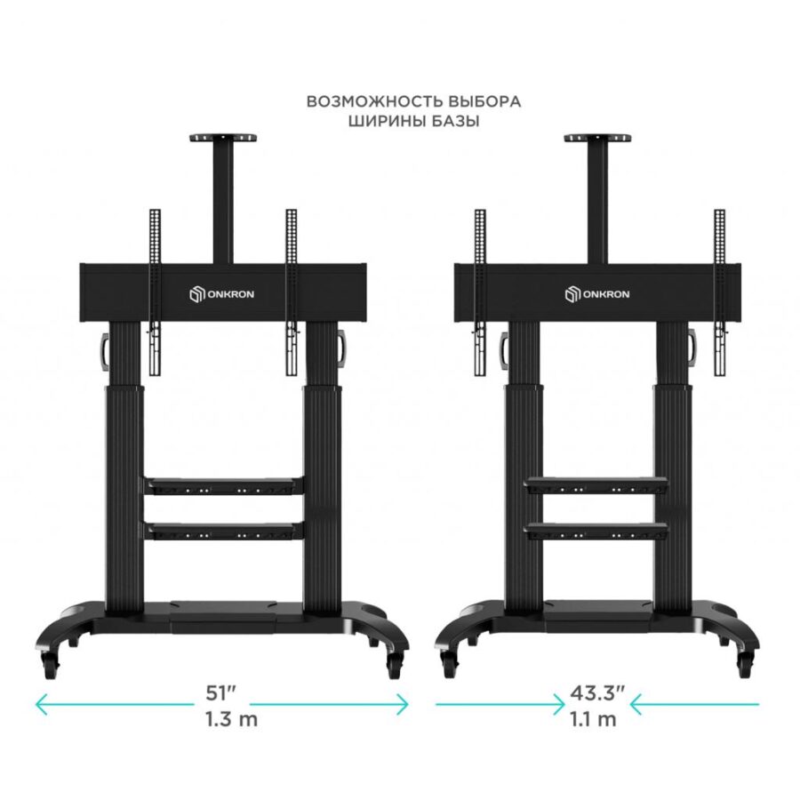 ONKRON TS2811 – идеальное решение для тех, кто ценит универсальность, надежность и эргономику. Удобная регулировка высоты и ширины основания обеспечивает адаптацию стойки под различные условия эксплуатации и размеры техники. Встроенный кабель-канал и регулируемая полка позволяют организовать аккуратное и эффективное рабочее пространство. Мобильность с помощью колес с тормозами обеспечивает легкость перемещения, поддерживая стабильность и безопасность во время работы.