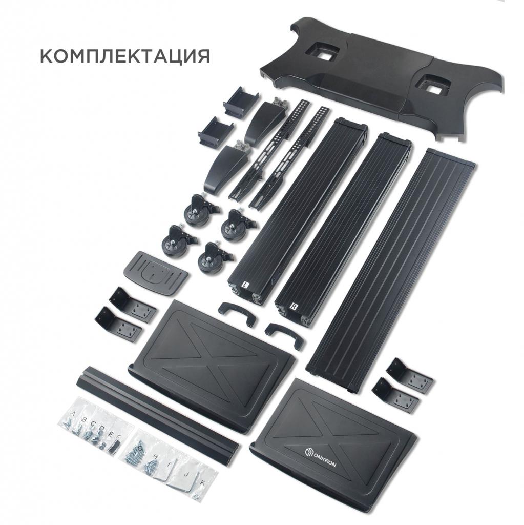 Для размещения дополнительной аудио- и видеотехники предусмотрена металлическая регулируемая полка, рассчитанная на нагрузку до 11,4 кг. Это позволяет организовать компактную и аккуратную зону техники и аксессуаров, обеспечивая быстрый доступ и функциональность.