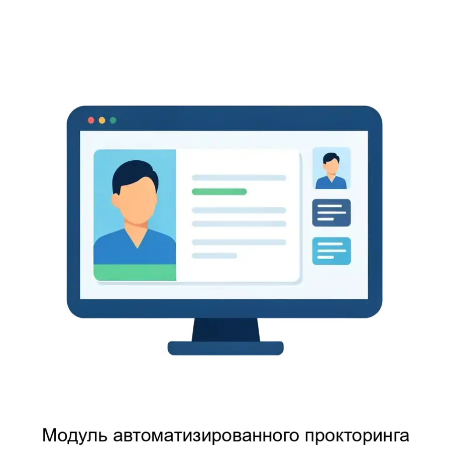 Модуль автоматизированного прокторинга функционирует на основе технологии машинного зрения, выполняет функции верификации и мониторинга при проведении дистанционного экзамена. Модуль анализирует видеоданные, получаемые с веб-камер экзаменуемых в процессе онлайн-тестирования, и формирует для наблюдателя (проктора) протокол, содержащий информацию о поведении экзаменуемых. Благодаря Модулю осуществляется эффективный и автоматизированный контроль обучающихся во время проведения дистанционных оценочных мероприятий.