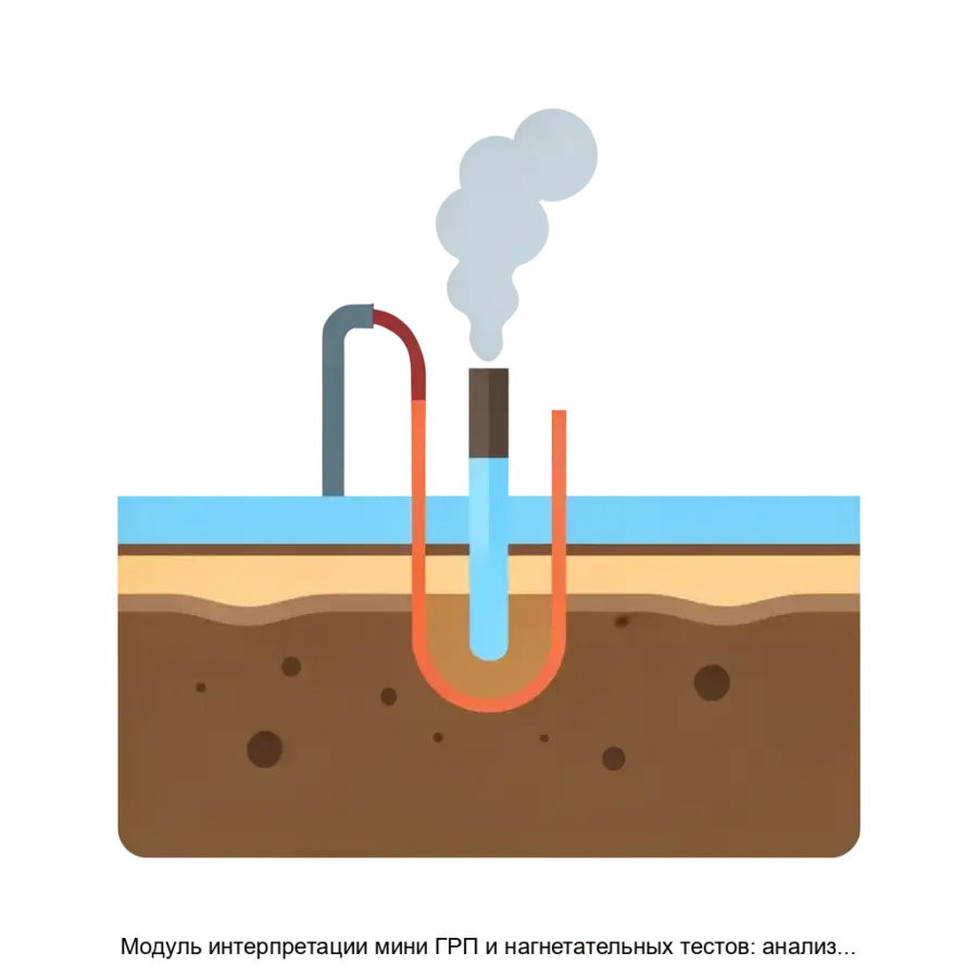 Модуль интерпретации мини ГРП и нагнетательных тестов предлагает комплексный анализ процессов, связанных с управлением и оптимизацией гидравлического разрыва пласта и натурных испытаний. Включает в себя анализ до и после закрытия трещины, а также исполнение шаговых расходных тестов, что способствует повышению эффективности разработки месторождений и точности прогнозирования нефтедобычи.