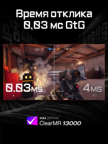 Частота обновления в 240 Гц обеспечивает невероятно плавное изображение даже в динамичных игровых сценах, снижая размытие движения и задержки, что критично для киберспорта и высокоскоростных игр. Время отклика монитора минимально, что уменьшает остаточные размытости и позволяет отслеживать быстрые объекты с максимальной точностью.