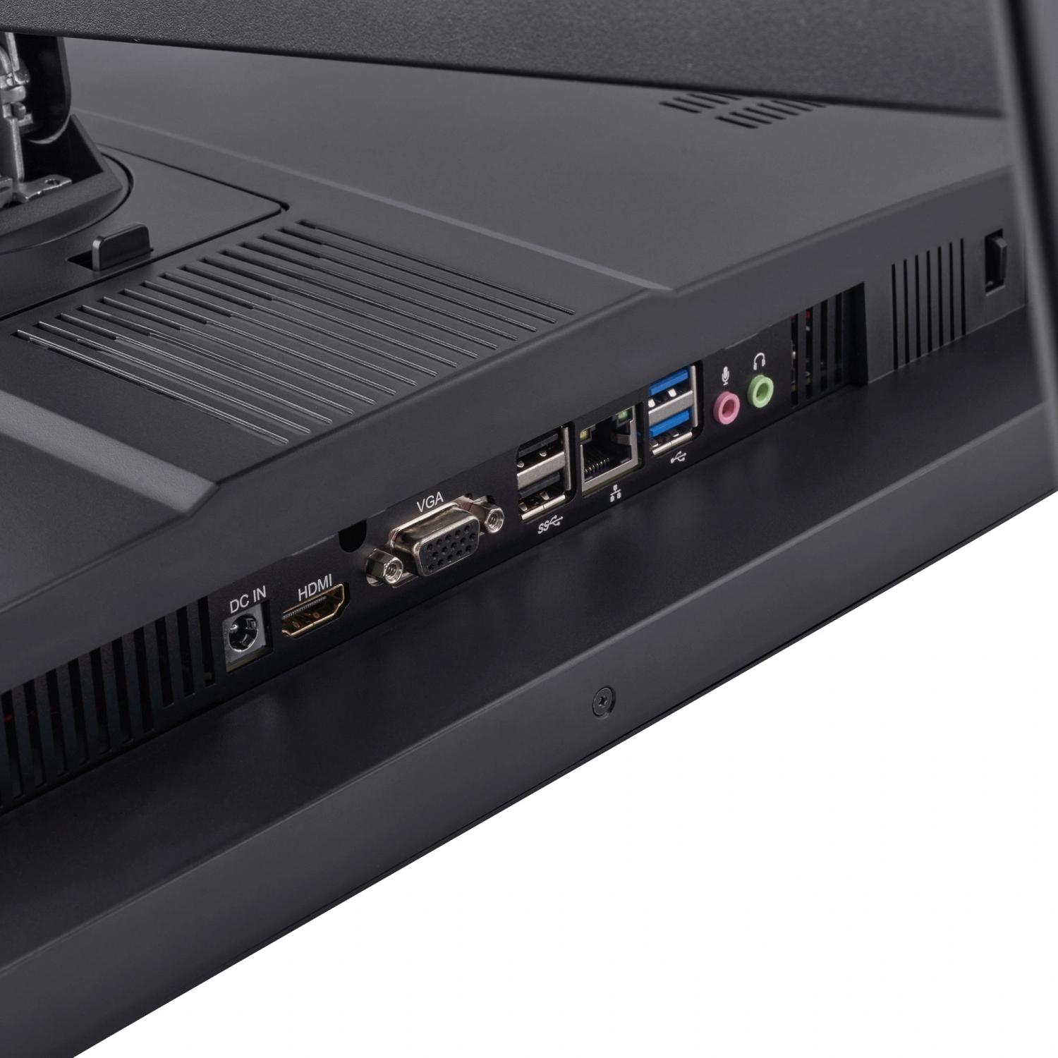 Моноблок оснащен широким набором интерфейсов, включая 6 портов USB Type-A (2 порта USB 3.2 Gen 1 и 4 порта USB 2.0), функциональный HDMI-разъем и D-Sub для подключения внешних дисплеев, а также разъемы для наушников и микрофона. Для подключения к сети предусмотрен гигабитный Ethernet, а также встроенные модули Wi-Fi (стандарт 802.11 b/g/n/ac) и Bluetooth версии 5.0, обеспечивающие надежную и быструю беспроводную связь.