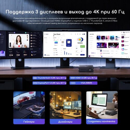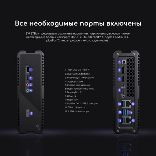Данный неттоп идеально подходит для корпоративного использования, где требуется стабильность и высокая производительность при выполнении множества задач одновременно. Также он может применяться в учебных заведениях, домашнем офисе, цифровых киосках и для мультимедийных целей. Благодаря компактным размерам и хорошему оснащению он занимает минимум места, обеспечивая при этом максимальную полезность и комфорт работы. Продвинутая сетевая конфигурация позволит легко интегрировать устройство в современные сетевые инфраструктуры с высокими требованиями к скорости передачи данных и безопасности. Поддержка Windows 11 Pro обеспечивает доступ к новейшим функциям операционной системы и удобство эксплуатации.