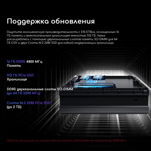 Объём оперативной памяти 16 ГБ позволяет комфортно работать с большими файлами, мультитаскингом и запускать требовательные к памяти программы без задержек. Для хранения данных в устройстве установлен быстрый и ёмкий SSD-накопитель объёмом 512 ГБ, обеспечивающий быстрый доступ к данным и высокую скорость загрузки системы и приложений.
