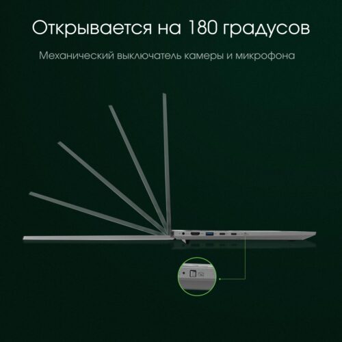 Корпус ноутбука выполнен в стильном сером цвете, сочетая современный дизайн с практичностью. Встроенная веб-камера и микрофон позволяют комфортно организовывать видеозвонки и конференции. Для беспроводного подключения предусмотрены модули Wi-Fi и Bluetooth, что расширяет возможности обмена данными и использования периферийных устройств.