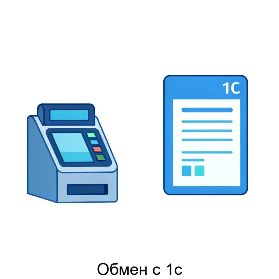 - Загружать в 1С чеки продажи, возвратов и товароучетные документы
