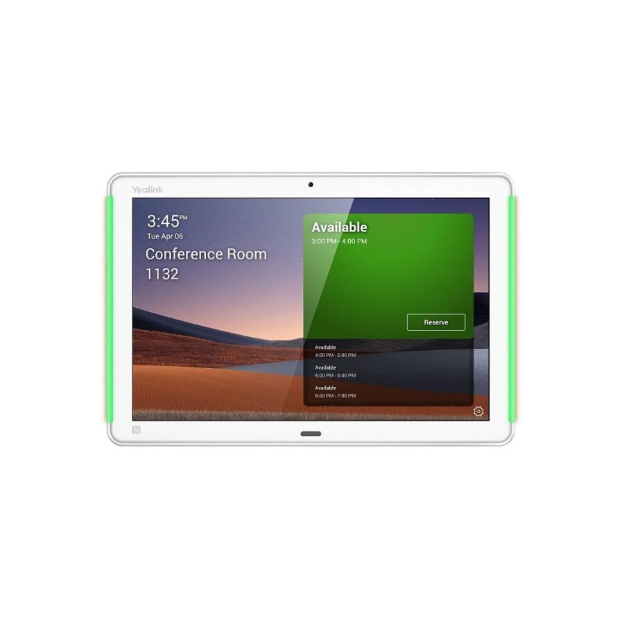 Терминал видеоконференцсвязи для бронирования конференций и переговорных комнат, устанавливается перед входом в помещение для извещения окружающих о статусе его занятости, запланированном или проходящем в нем совещании, другой полезной информации, а также предоставляет возможность забронировать эту или другую переговорную комнату. Бронирование производится удаленно из сторонних сервисов ВКС, YealinkMeeting или непосредственно со встроенного сенсорного экрана, поддерживает сторонние приложения бронирования.