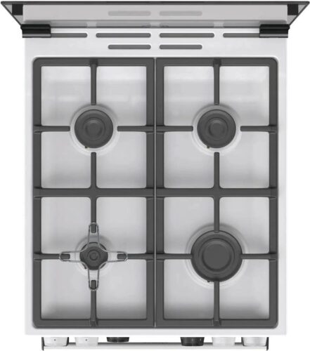 Плита оснащена 4 конфорками разной мощности, которые позволяют одновременно готовить несколько блюд, оптимально управляя тепловой нагрузкой для каждого из них. Чугунные решетки устойчивы к деформации и легко снимаются для очистки. Газ-контроль безопасности блокирует подачу газа при случайном потухании пламени, обеспечивая дополнительную защиту.