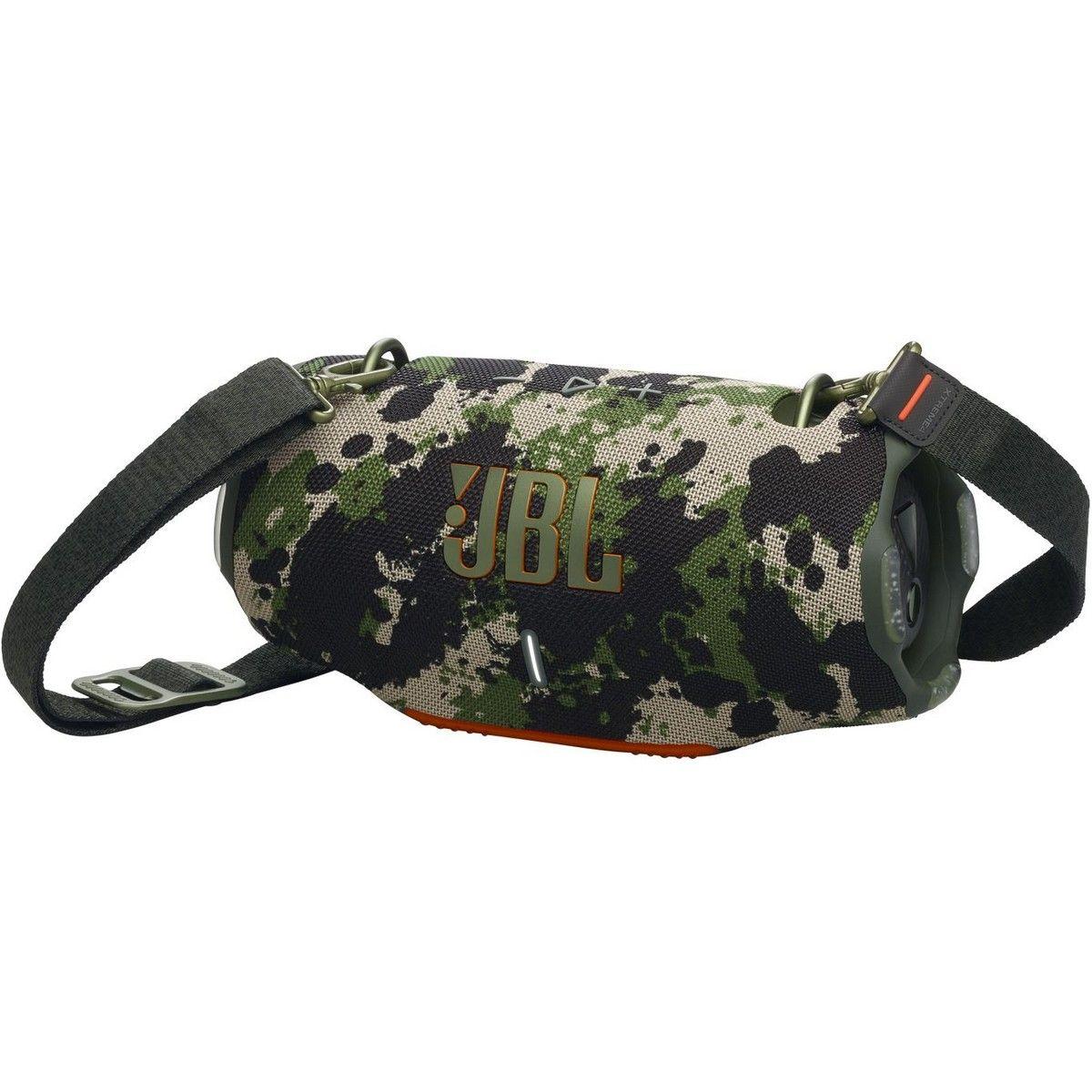 JBL Xtreme 4 Portable Waterproof Speaker в расцветке Black Camo — это портативная акустическая система, разработанная для использования в различных условиях, в том числе на открытом воздухе. Этот динамик обеспечивает мощный и качественный звук, характерный для продукции JBL, и предназначен для любителей музыки, которые ценят не только аудио характеристики, но и надежность, и мобильность.