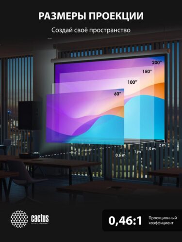 Проектор Cactus Bright CS-V1.B представляет собой высококачественный инсталляционный короткофокусный светодиодный проектор, разработанный для использования в аудиториях, классах и конференц-залах. Благодаря современной 3LCD технологии и собственной разрешающей способности 1024×768 пикселей он обеспечивает яркое и четкое изображение с высокой контрастностью 30000:1, что способствует комфортному просмотру презентаций, обучающих материалов и видеоконтента при различных условиях освещения.