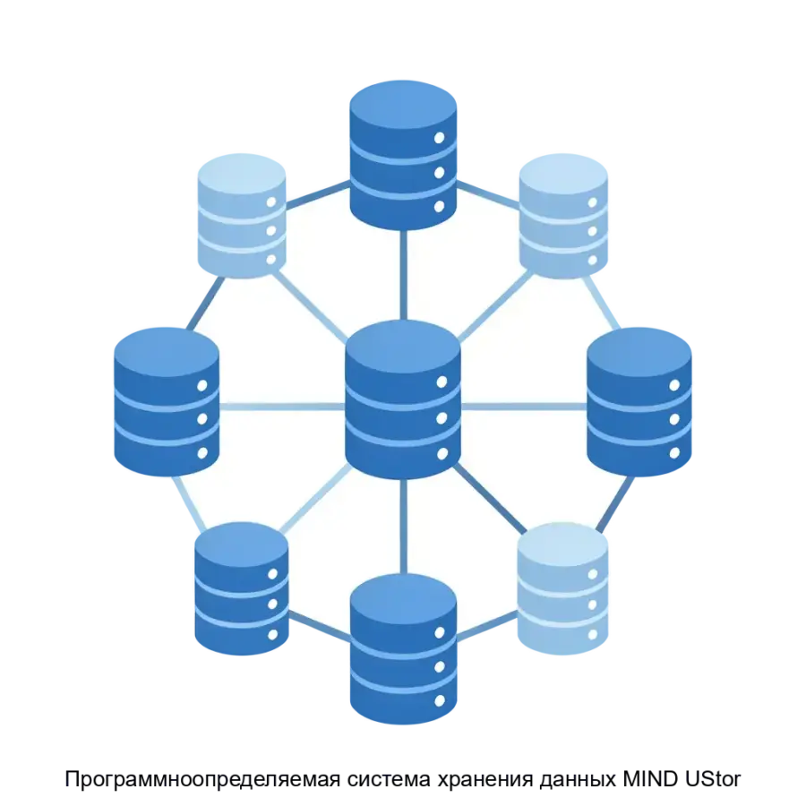 Программно-определяемая система хранения данных MIND UStor представляет собой комплексное программное решение для организации распределённого хранилища, которое использует стандартные вычислительные платформы и сетевое оборудование общего назначения. Этот продукт был разработан с учётом современных индустриальных тенденций, что позволяет ему обеспечивать высокую производительность при низком потреблении вычислительных ресурсов узлов кластера, а также демонстрировать горизонтальную и вертикальную масштабируемость, а также рабочую надёжность без единой точки отказа.