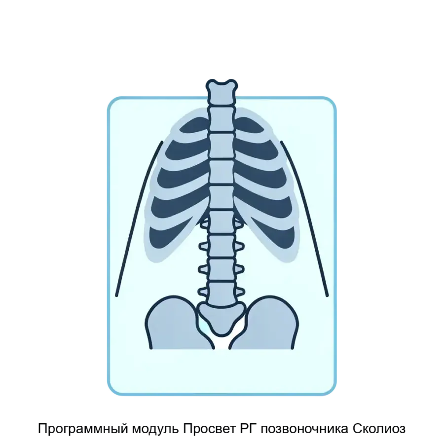 Данный программный модуль предназначен для помощи медицинским специалистам, таким как рентгенологи и ортопеды, в автоматической обработке и анализе изображений позвоночника в прямой проекции. Он обеспечивает быстрый и стандартизированный анализ, что особенно важно при рутинных обследованиях пациентов с подозрением на сколиоз. Помимо автоматического распознавания и морфометрии, программа формирует протоколы исследований в формате DICOM SR, что обеспечивает совместимость и интеграцию в существующие информационные системы медицинских заведений.