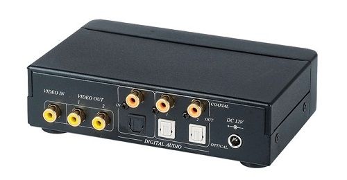 Распределитель разветвитель видеосигнала и цифрового аудио (1 вход/2 выхода (1хRCA видео, 1хRCA цифр. аудио, оптический аудио порт Toslink)). Питание 12VDC, 500mA. Размер: 145x96x37 мм.