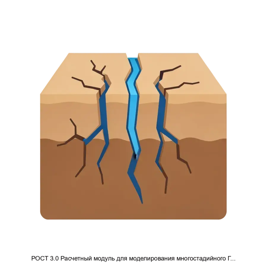 Расчетный модуль РОСТ 3.0 предназначен для моделирования многостадийного гидравлического разрыва пласта с предзаданной сетью трещин. Он позволяет оценивать влияние различных факторов на эффективность процесса гидравлического разрыва, а также прогнозировать поведение пласта в процессе эксплуатации.