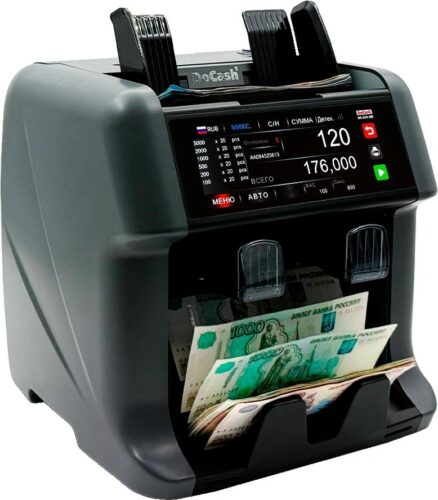 DoCash DC-55V HD комплектуется верхним загрузочным карманом для банкнот емкостью до 500 штук и двумя приемными карманами с вместимостью 200 банкнот, что позволяет эффективно управлять потоками валюты и организовывать сортировку по номиналам.