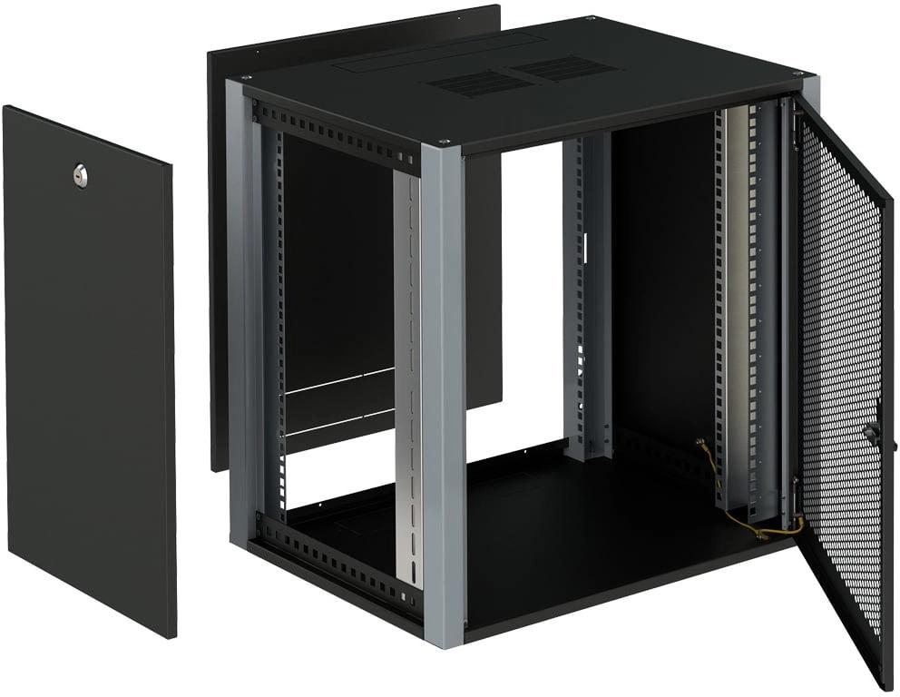 Данный шкаф имеет высоту 12 юнитов (U), что соответствует внутренней высоте, пригодной для установки разнообразных коммутационных устройств, в том числе, расширяемых систем. Габаритные размеры 600×600 мм позволяют легко интегрировать его в существующие инфраструктуры, а вес около 24 кг свидетельствует о прочности и надежности конструкции. Передняя перфорированная дверь обеспечивает отличный доступ к установленному оборудованию, а также хорошую вентиляцию, что способствует сохранению оборудования в рабочем состоянии. Два боковых панели облегчают монтаж и расширение системы, позволяют проводить дополнительные соединения и обслуживание.