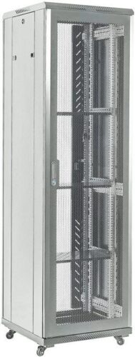 Шкаф оснащён фронтальной и задней дверями с перфорацией для максимального воздушного потока, что является важным фактором поддержания стабильной работы серверов и другого установленного оборудования. Напольная конструкция гарантирует устойчивость и надежность монтажа, предотвращая вибрации и обеспечивая простоту установки и обслуживания.