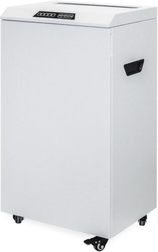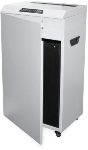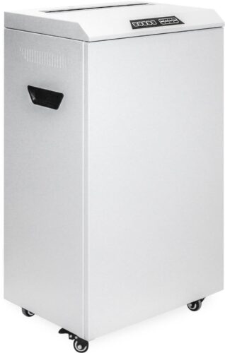 Уровень шума при работе устройства составляет 50 дб, что соответствует умеренному звуковому фону и делает шредер подходящим для использования в офисной среде без создания дискомфорта для сотрудников. Компактные габариты устройства 460х837х335 мм и вес 48.8 кг обеспечивают удобство размещения и эксплуатации в рабочих помещениях с ограниченным пространством.