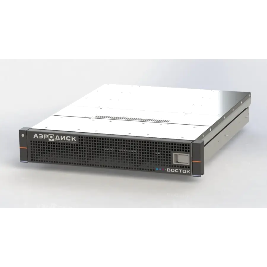 Параметрический и высокотехнологичный продукт — СХД АЭРОДИСК ВОСТОК — представляет собой систему хранения данных корпоративного уровня, полностью созданную на территории России с использованием отечественных процессоров «Эльбрус» и программного обеспечения АЭРОДИСК ENGINE. Эта система предназначена для обеспечения надежного и эффективного хранения больших объемов данных в компаниях и организациях среднего и крупного бизнеса. Модель АЭРОДИСК ВОСТОК-5 2U—это среднеуровневая (Mid-range) система с двумя активными контроллерами, что обеспечивает высокую надежность и отказоустойчивость при работе в режиме 24/7.