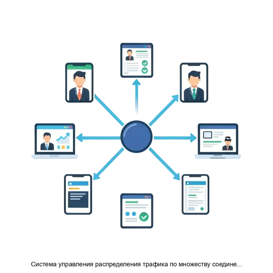Система управления распределения трафика по множеству соединений предназначена для оптимизации потоков данных в рамках информационной инфраструктуры предприятия. Это решение решает ключевые задачи, связанные с эффективным распределением доступной пропускной способности сетевых ресурсов, обеспечивая высокое качество обслуживания (QoS) в современных компьютерных сетях.