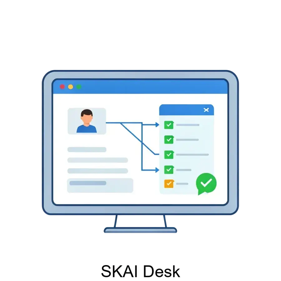 SKAI Desk — это современная веб-ориентированная система автоматизации и управления проектами, предназначенная для повышения эффективности процессов обслуживания клиентов, ведения проектов внедрения и взаимодействия с монтажными подрядными организациями. Приложение реализовано с использованием клиент-серверной архитектуры, что обеспечивает надежную работу как на стационарных ПК, так и на мобильных устройствах, поддерживая работу во всех современных браузерах. Эта система способствует стандартизации процессов, повышению прозрачности и скорости выполнения задач, а также улучшению качества обслуживания клиентов за счет внедрения автоматизированных инструментов и аналитической отчетности.