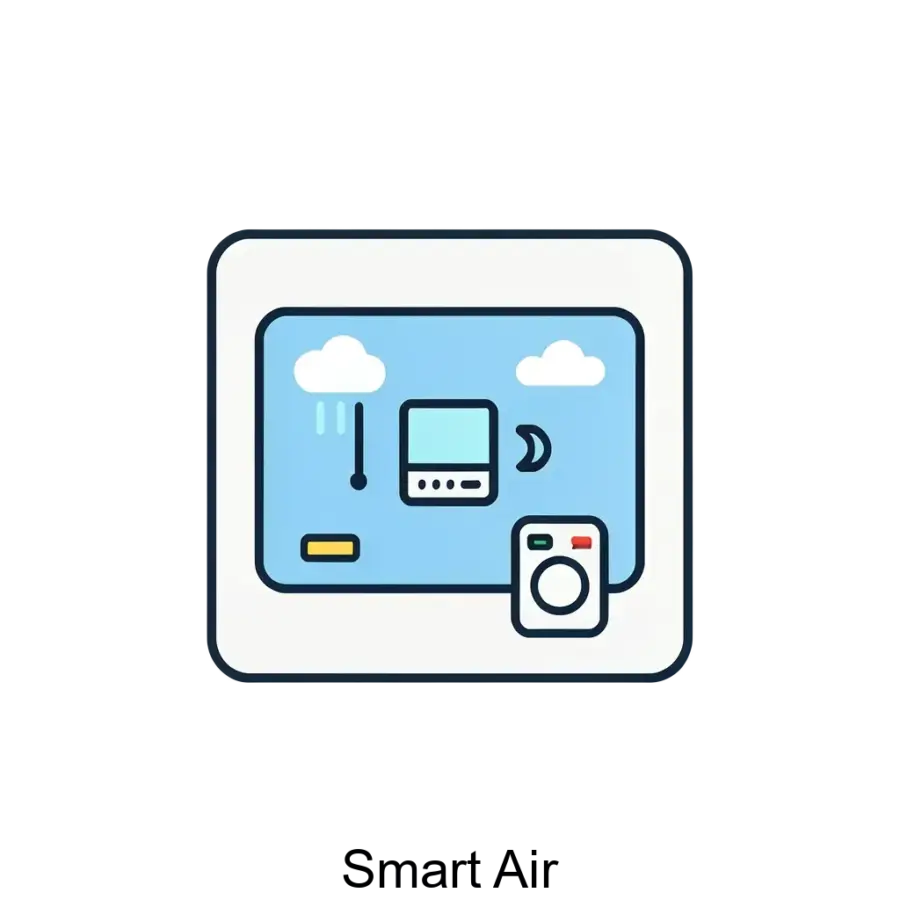 Основные функции Smart Air включают точный контроль температуры, регулирование уровня влажности для предотвращения сухости или избыточной влаги, а также мониторинг и очистку воздуха от загрязнителей, аллергенов и неприятных запахов с помощью передовых фильтрационных систем. Пользователи могут управлять системой через удобное мобильное приложение, устанавливать расписание работы, отслеживать качество воздуха в режиме реального времени и получать уведомления о необходимости обслуживания или замены фильтров.