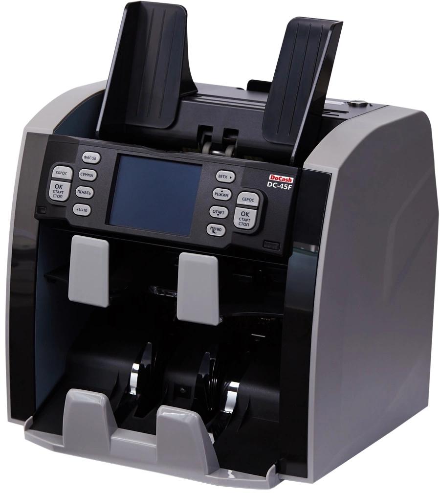 Сортировщик банкнот DoCash DC-45F — это современное автоматизированное устройство, предназначенное для быстрого и точного сортирования наличных денежных средств различных валют. Этот аппарат обеспечивает высокопроизводительную обработку банкнот в автоматическом режиме, что значительно увеличивает эффективность кассовых операций в банках, обменных пунктах, торговых точках и других финансовых учреждениях. Модель DC-45F способна работать с купюрами рублей, долларов, евро, юаней и фунтов, обеспечивая их сортировку по номиналу, наличию повреждений и валюта.