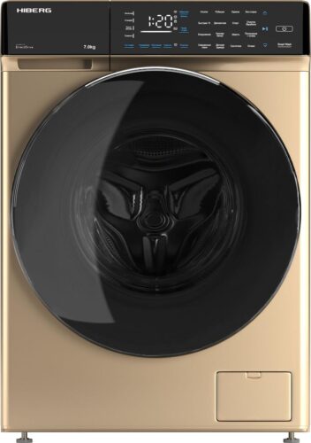 Корпус стиральной машины выполнен в стильном золотистом цвете с черным люком диаметром 52 см, раскрывающимся на 150 градусов влево, что обеспечивает удобный доступ к барабану. Последний изготовлен из нержавеющей стали, что гарантирует долговечность, устойчивость к коррозии и бережное отношение к текстилю. При объемах загрузки до 7 кг Hiberg i-DDQ9-712 G подходит как для небольших, так и для больших семей.