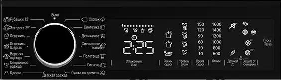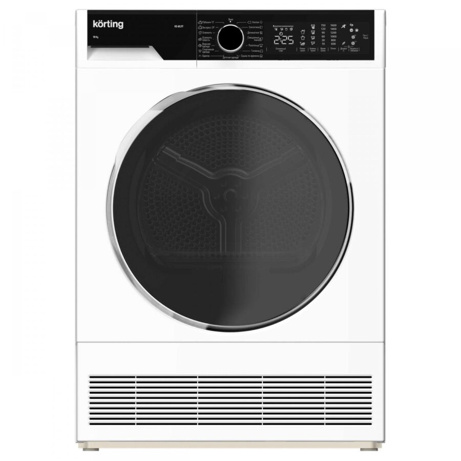 Устройство оснащено цифровым дисплеем, который отображает оставшееся время программы, что позволяет планировать нагрузку и контролировать процесс сушки. Для максимального удобства предусмотрено 15 программ сушки, адаптированных к различным типам тканей и уровням влажности. Среди опций есть отложенный старт работы до 24 часов, что дает возможность запустить сушку в наиболее удобное время, например, в ночные часы или при отсутствии пользователя дома.