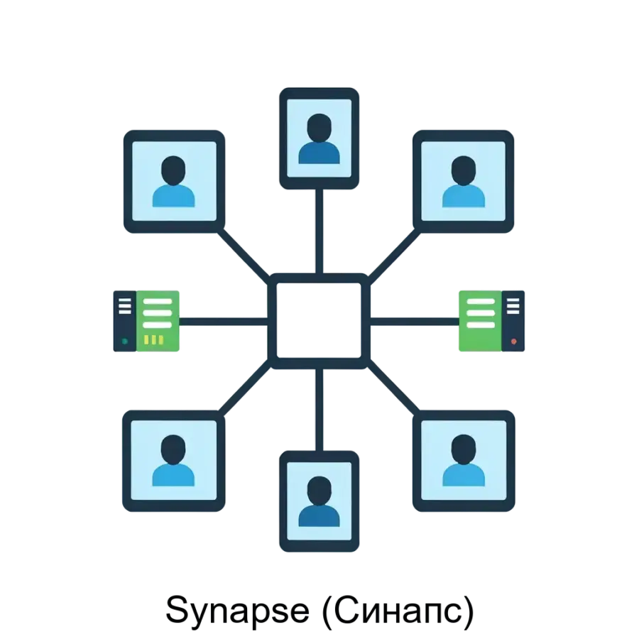 Синапс — это полнодуплексная система служебной связи с возможностью подключения неограниченного количества абонентов как внутри локальной сети, так и через Интернет. Средой передачи данных служит IP-сеть. Ядро системы — компьютер с установленным серверным приложением Синапс. Все абоненты подключаются в обычные сетевые коммутаторы, поэтому монтаж небольшого комплекса может занять всего 1 день.